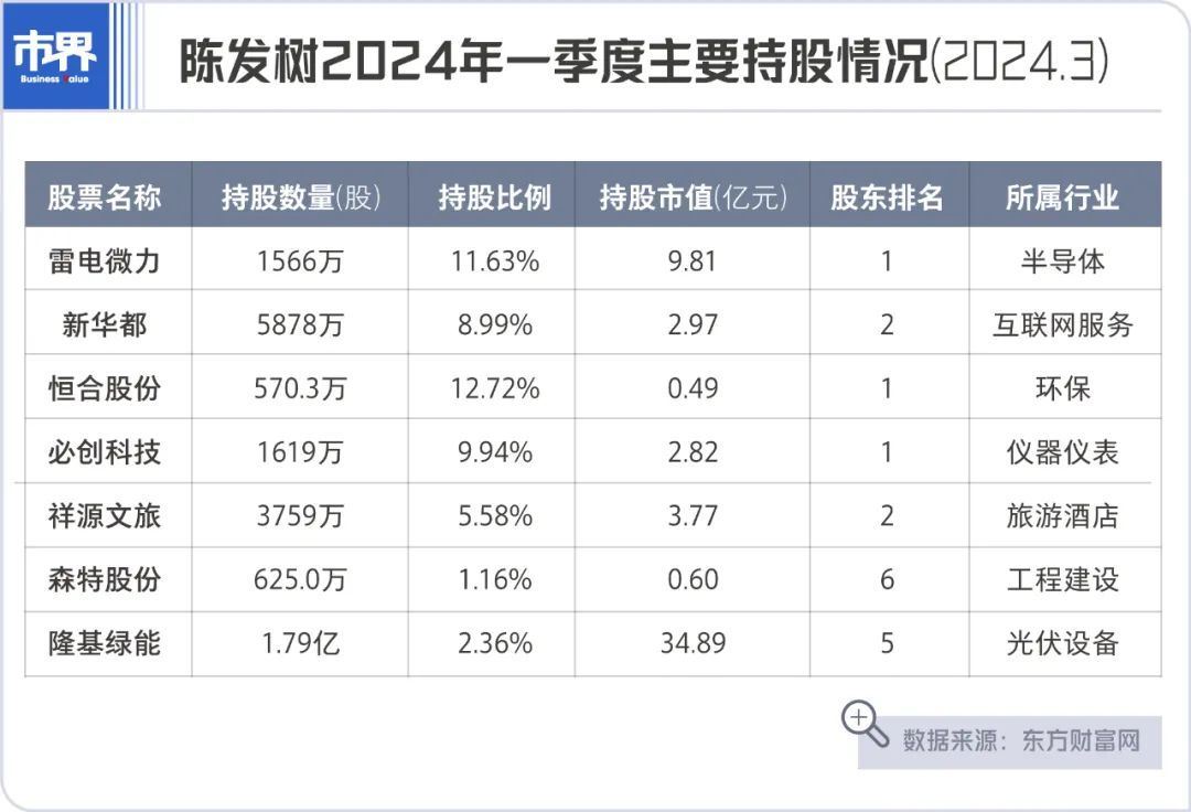 2023年10月,陈发树以380亿东谈主民币财富位列胡润百富榜第122位。「市界」查询东方财富网,甘休2024年3月底,除云南白药外,陈发树手中最新捏股数目为七支,离别为雷电微力、新华王人、恒结伙份、必创科技、祥源文旅、森特股份、隆基绿能,累计捏股市值超55亿。