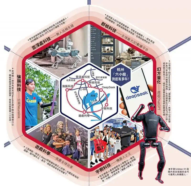 不仅如斯,这两家企业,与树立春晚扭秧歌机器东谈主的宇树科技、深耕脑机接口范围的强脑科技、聚焦智能机器东谈主制造的云深处、研发云缱绻软件系统的群核科技等4家在行业内颇具后劲的创新企业一谈,被称为“杭州六小龙”,成为当地发展新质坐褥力的天真注脚。